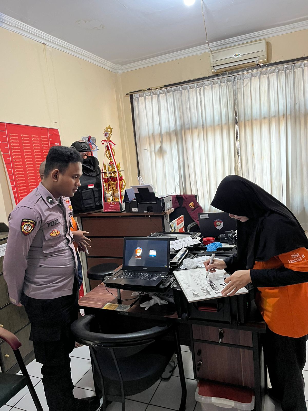 Anggota Sat Tahti Polres Cilegon Melakukan Koordinasi dengan Unit INAFIS Untuk Keperluan Fungsi melalui  BRIPTU Daniel bertugas untuk mendata dan memenuhi segala administrasi yang ada di lingkungan SatTahti polres cilegon. Dipimpin oleh Kasat Tahti yaitu IPTU Yudi Hartono sebagai penanggung jawab kepada Tahti Terkait Sidik Jari