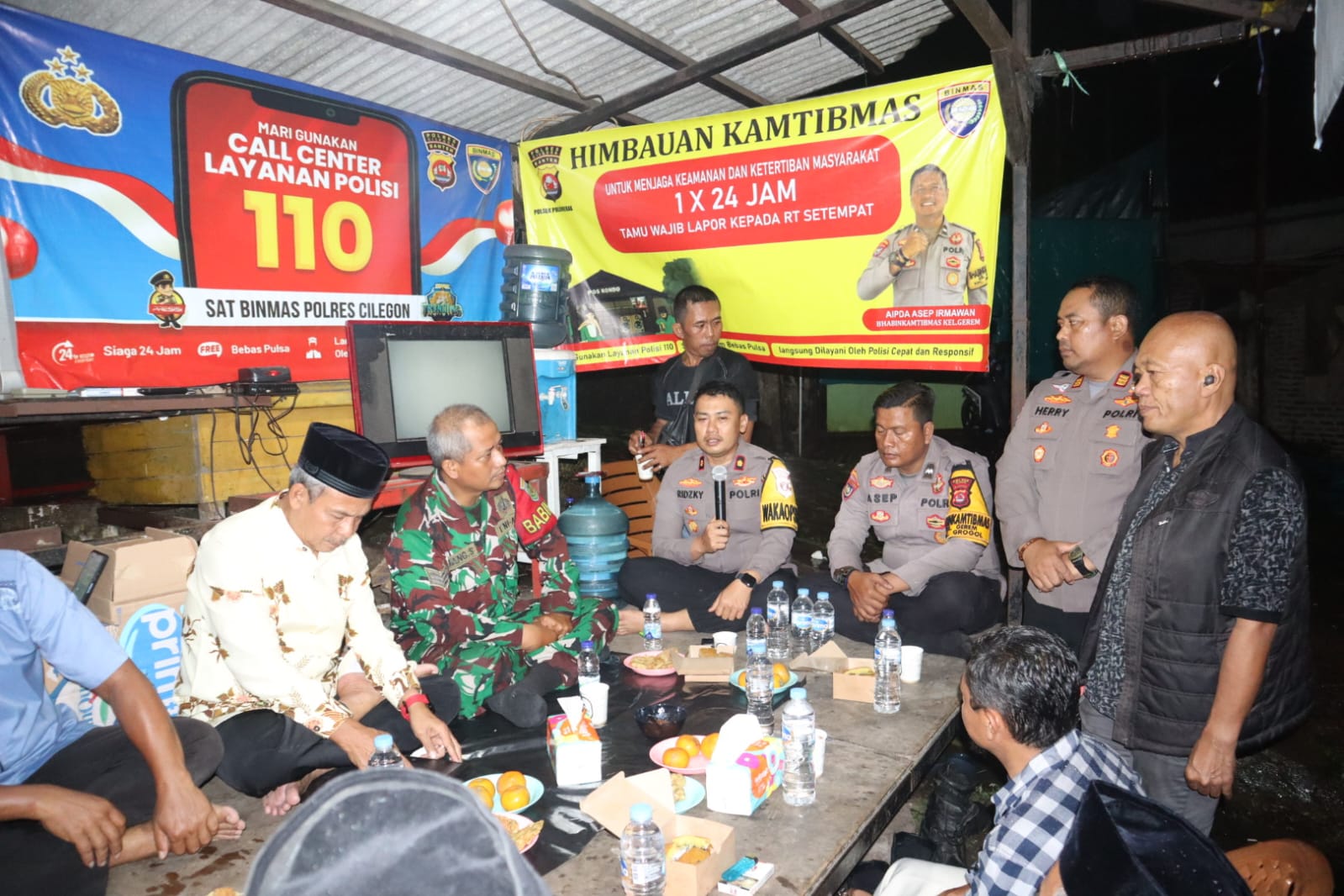 Kegiatan yang berlangsung mulai pukul 21.00 WIB tersebut dihadiri Wakapolres Cilegon KOMPOL M. Ridzky Salatun, S.I.K., didampingi Kasat Binmas Polres Cilegon IPTU Muhyidin, S.H., Kasi Propam Polres Cilegon AKP Heri Susanto, S.H., M.M., serta jajaran personel Polres dan Polsek. Turut hadir Plt Lurah Gerem Himatul Qismat, S.Pdi, unsur TNI, para Ketua RT/RW, serta perwakilan warga setempat.