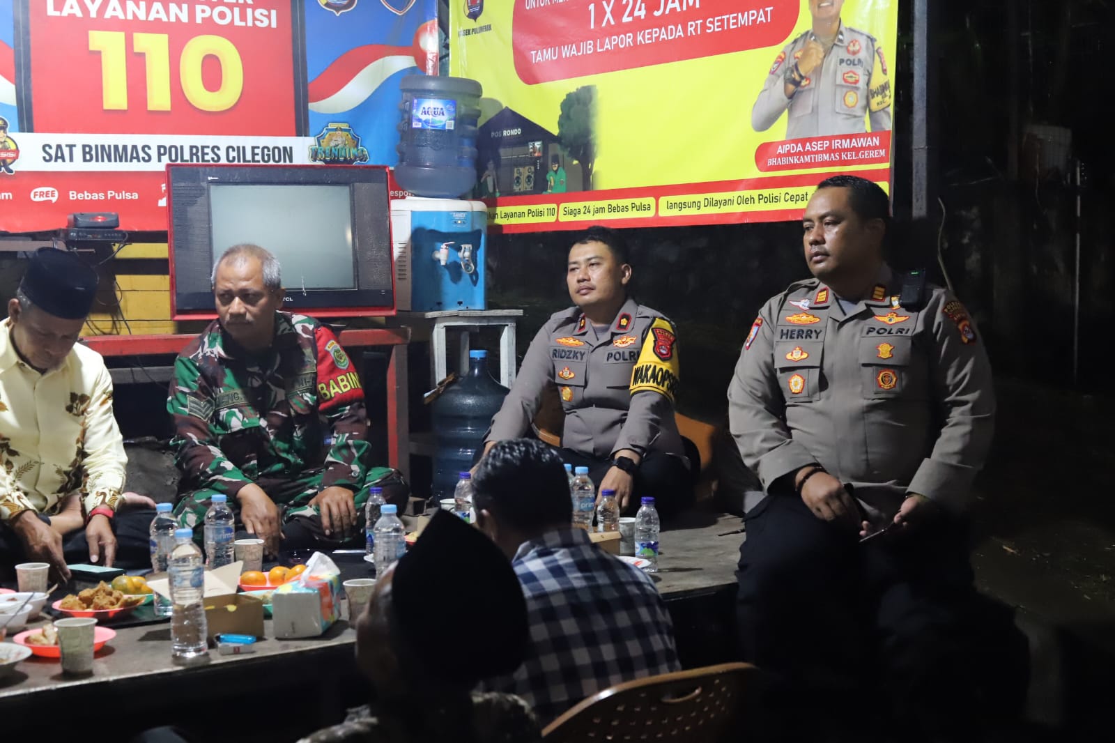 Kegiatan yang berlangsung mulai pukul 21.00 WIB tersebut dihadiri Wakapolres Cilegon KOMPOL M. Ridzky Salatun, S.I.K., didampingi Kasat Binmas Polres Cilegon IPTU Muhyidin, S.H., Kasi Propam Polres Cilegon AKP Heri Susanto, S.H., M.M., serta jajaran personel Polres dan Polsek. Turut hadir Plt Lurah Gerem Himatul Qismat, S.Pdi, unsur TNI, para Ketua RT/RW, serta perwakilan warga setempat.