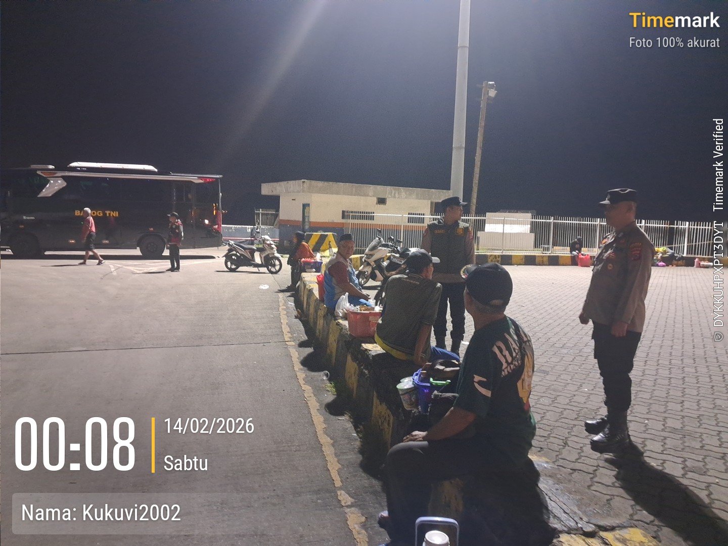 Cilegon - Personil Polsek Kskp Merak Polres Cilegon melaksanakan patroli di kawasan pelabuhan merak memberikan rasa aman dan damai, Sabtu (14/02/2026)