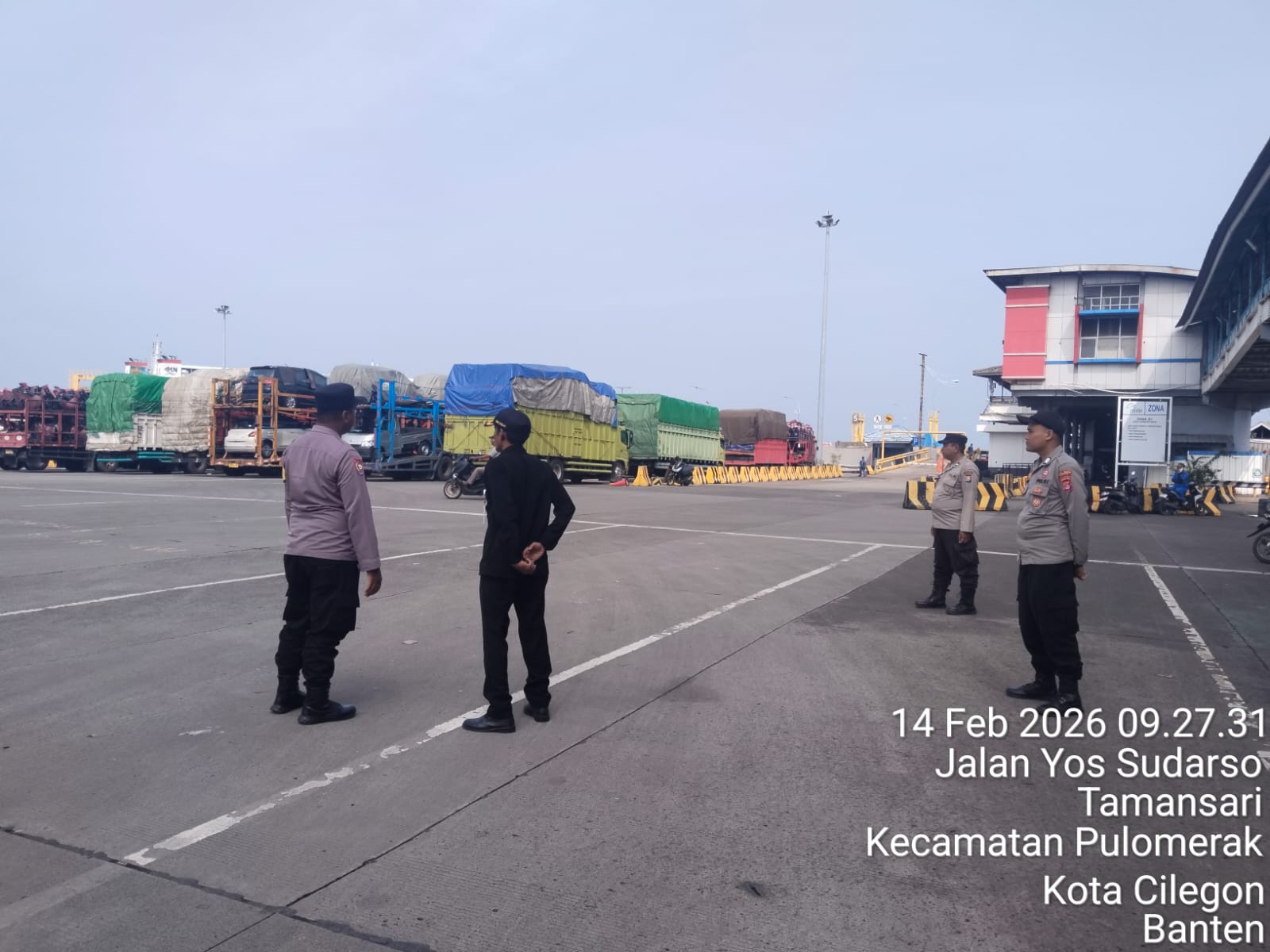 Cilegon - Personel Polsek Kskp Merak Polres Cilegon Polda Banten melaksanakan sambang dan patroli kawasan pelabuhan merak dalam rangka menjaga Harkamtibmas di Kawasan Pelabuhan Merak, Sabtu (14/02/2026).