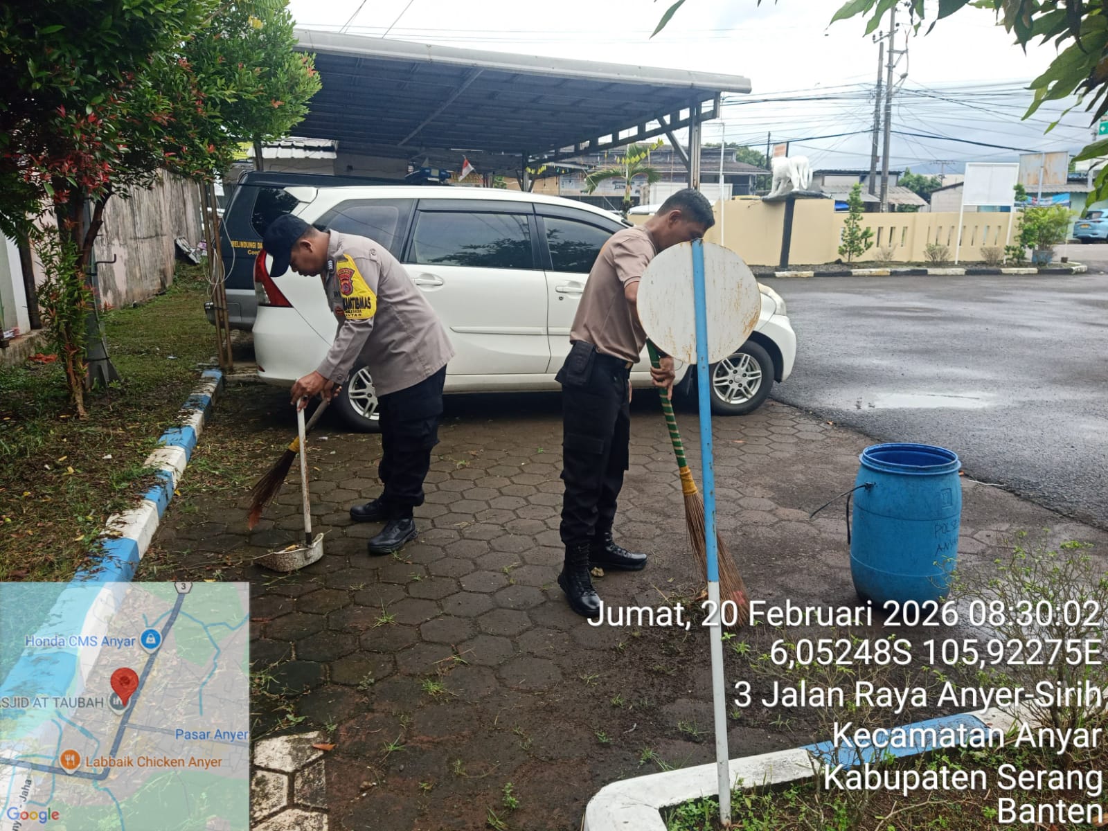 Anggota Polsek Anyar melaksanakan kegiatan Jumat Bersih di sekitar lingkungan Markas Komando (Mako) Polsek Anyar. Jumat (20/02/2026)