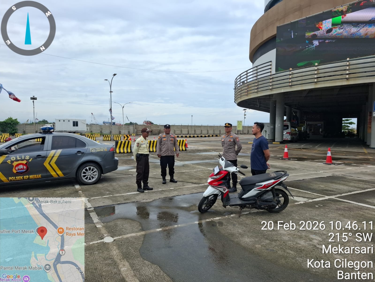Cilegon - Personel Polsek Kskp Merak Polres Cilegon Polda Banten melaksanakan sambang dan patroli kawasan pelabuhan merak dalam rangka menjaga Harkamtibmas di Kawasan Pelabuhan Merak, Jumat (20/02/2026).