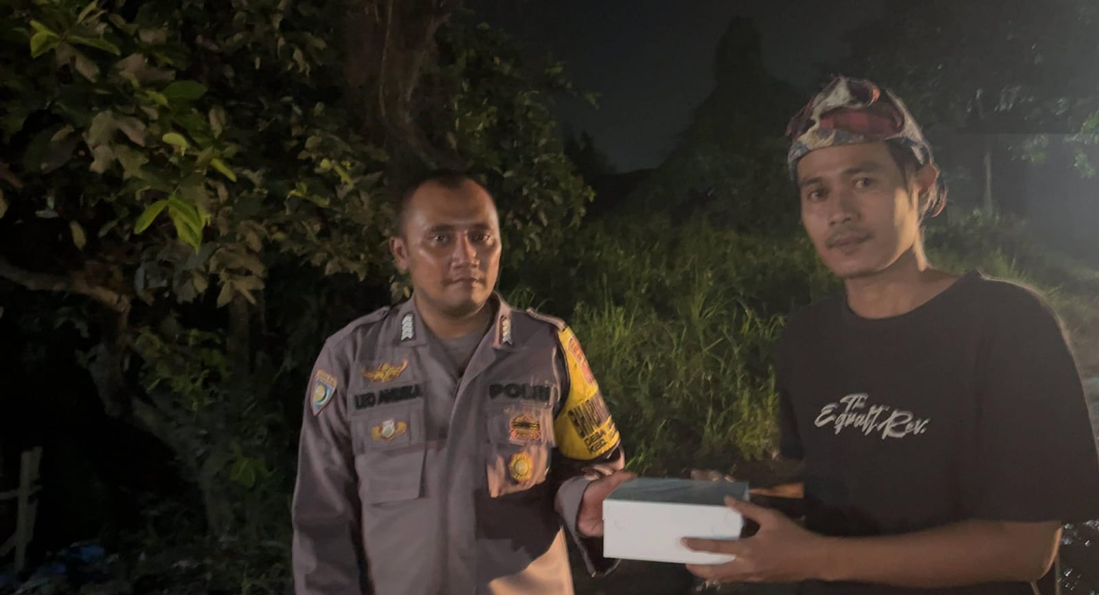 Gelar Sahur On The Road,Bripka Leo A & Brigpol Chaeruman Bhabinkamtibmas Bagikan Nasi Kepada Warga & Sosialisasi Call Center 110