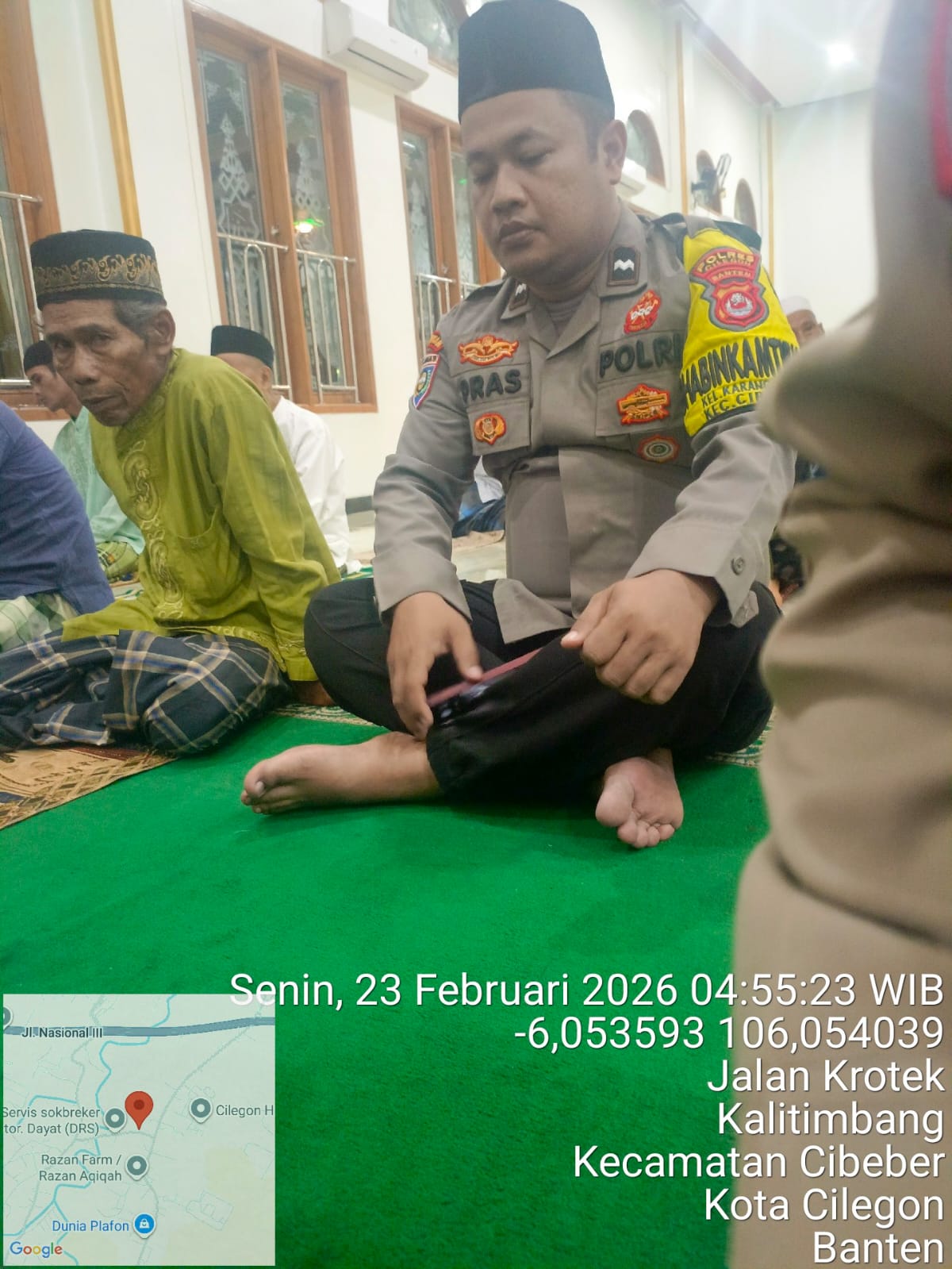 kegiatan tersebut, Personil Polsek Cinangka turut berbaur dengan jemaah masjid