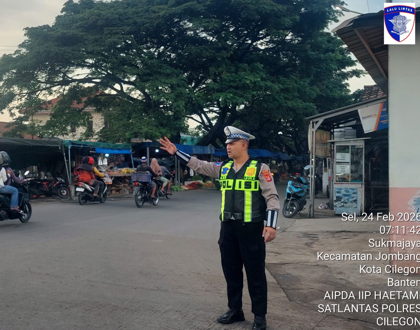 Cilegon, Satlantas Polres Cilegon Polda Banten – Berikan pelayanan kepada masyarakat Kasat lantas Polres Cilegon AKP Ridwan memerintahkan jajaran lalulintas untuk melaksanakan pengaturan lalu lintas di penggal – penggal jalan yang rawan kemacetan di Kota Cilegon, (Selasa,24/2/2026)