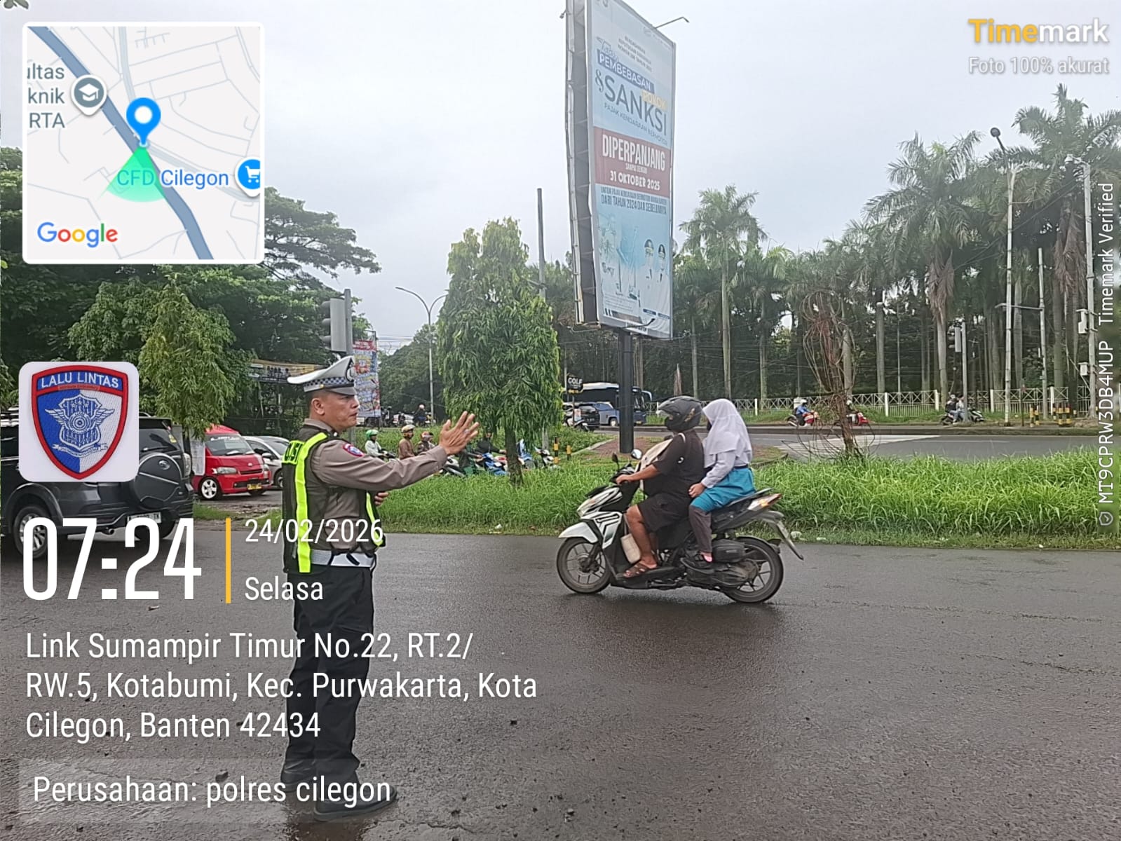 Cilegon, Satlantas Polres Cilegon Polda Banten – Berikan pelayanan kepada masyarakat Kasat lantas Polres Cilegon AKP Ridwan memerintahkan jajaran lalulintas untuk melaksanakan pengaturan lalu lintas di penggal – penggal jalan yang rawan kemacetan di Kota Cilegon, (Selasa,24/2/2026)