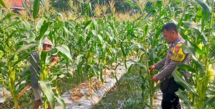 Personil Bhabinkamtibmas Polsek Purwakarta Bantu Perawatan Tanaman Jagung warga