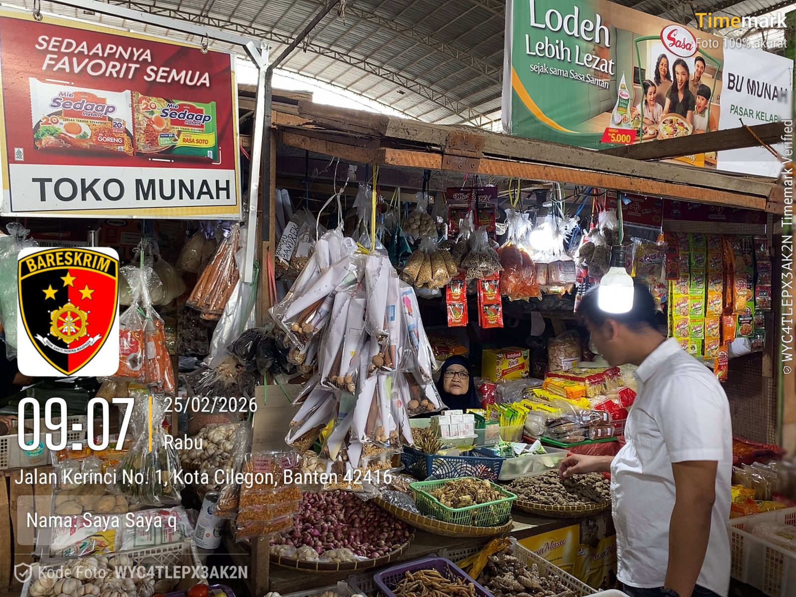 Cilegon – Unit II Satreskrim Polres Cilegon Polda Banten melakukan pengecekan terhadap persediaan dan harga bahan pangan di Pasar Kelapa, Cilegon, tahun 2026. Rabu tanggal 25 02 2026.