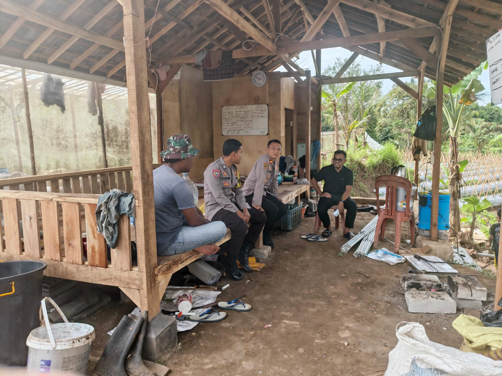 Kapolsek Cibeber dan Bhabinkamtibmas laksanakan silaturahmi kamtibmas menjalin komunikasi dan kemitraan dengan warga.