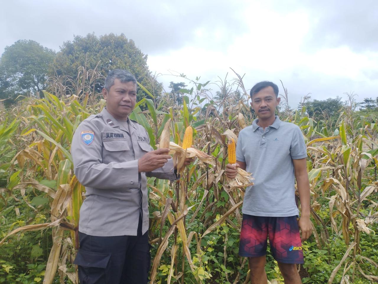 Bhabin kamtibmas Polsek cinangkamelakukan monitoring Lahan jagung untuk Katahanan Pangan.