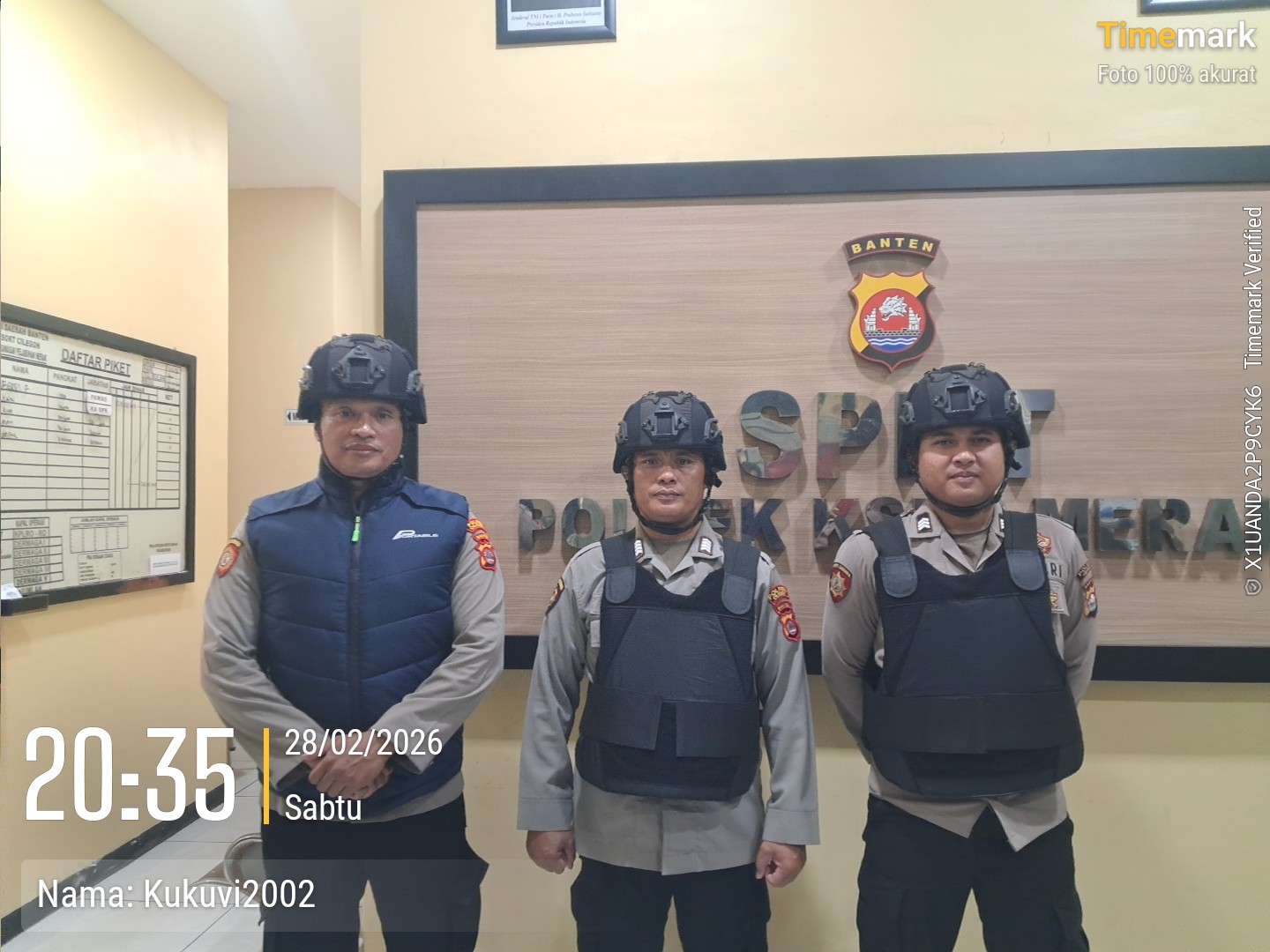 Cilegon - Personel piket jaga Polsek Kskp Merak Polres Cilgon Polda Banten melaksanakan siaga 1 Polsek pelaksanaan Sispam Mako oleh piket siaga dipimpin oleh Kspk Polsek Kskpy Merak Polres Cilegon Polda Banten, Sabtu (28/02/2026).
