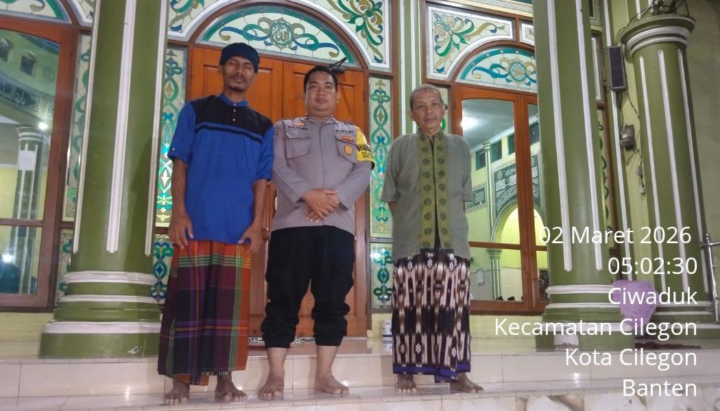 Cilegon – Polres Cilegon Polda Banten, Personil Polsek Cilegon Polres Cilegon menggelar kegiatan Pembinaan Rohani dengan shalat subuh keliling di Masjid Al - Muhajirin Jl. Kh. TB. Ismail Kavling Blok G Rt.007/006 Kel.Ciwaduk Kec. Cilegon Kota Cilegon, Senin (02/03/2026).