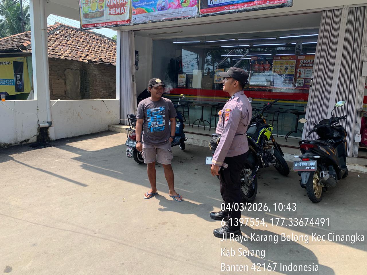 Bhabinkamtibmas Polsek Cinangka melaksanakan Sambang dan Komunikasi Kamtibmas dengan menyampaikan pesan Kamtibmas kepada masyarakat di Desa Cinangka Kec. Cinangka Kab. Serang. Rabu, 4/03/2026