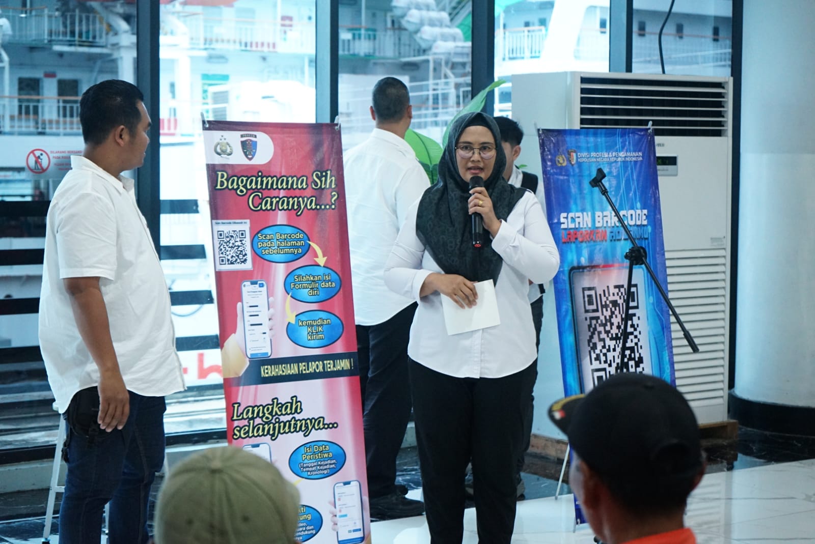 CILEGON – Upaya memperkuat pengawasan internal dan meningkatkan transparansi pelayanan terus dilakukan jajaran Polda Banten melalui sosialisasi QR Barcode Bidpropam kepada masyarakat. Kegiatan tersebut dilaksanakan pada pukul 17.00 WIB di ruang tunggu penumpang eksekutif Pelabuhan Merak, Rabu (4/3/2026).