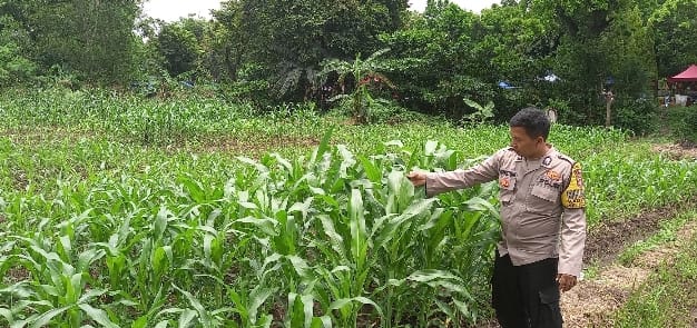 Dalam kegiatan tersebut, Bripka Agustoni turun langsung ke lahan pertanian untuk melihat perkembangan tanaman jagung sekaligus berdialog dengan masyarakat terkait kondisi pertanian serta memberikan motivasi kepada warga agar terus memanfaatkan lahan yang ada untuk kegiatan produktif guna mendukung program ketahanan pangan.