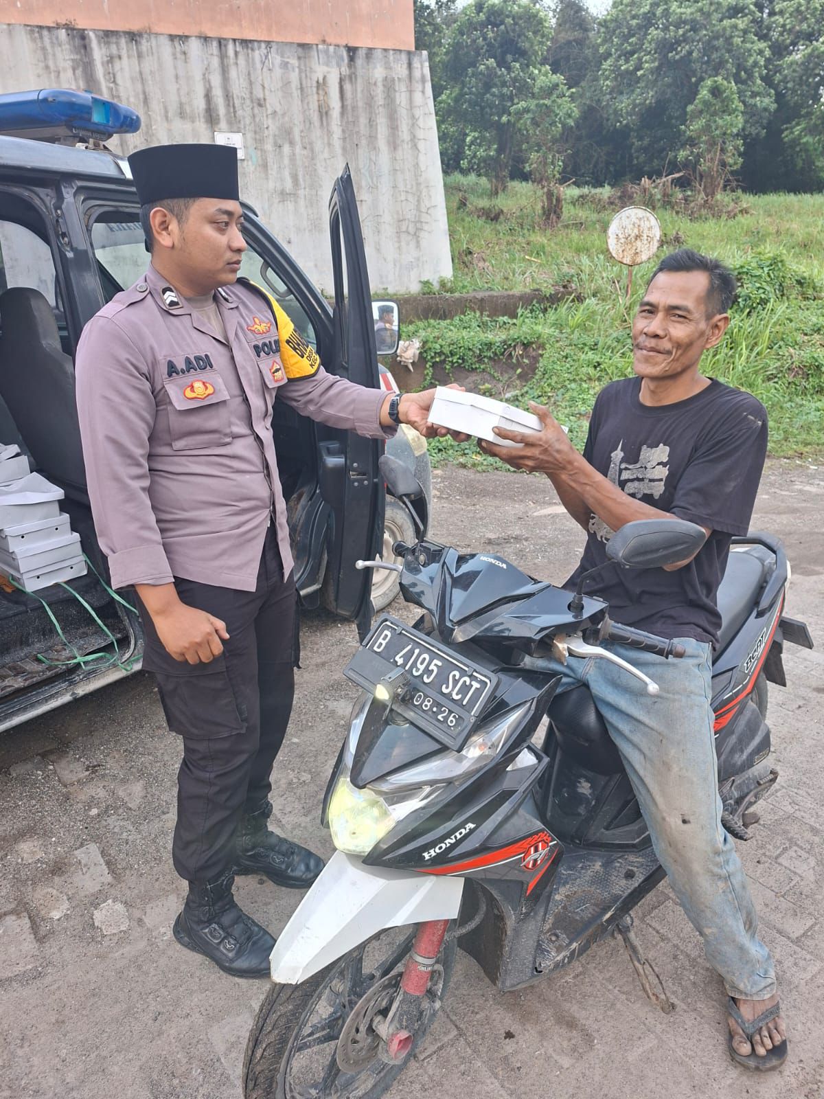 Polsek Bojonegara Polres Cilegon berbagi Takjil kepada pengguna jalan di depan sekitaran Mako Polsek.