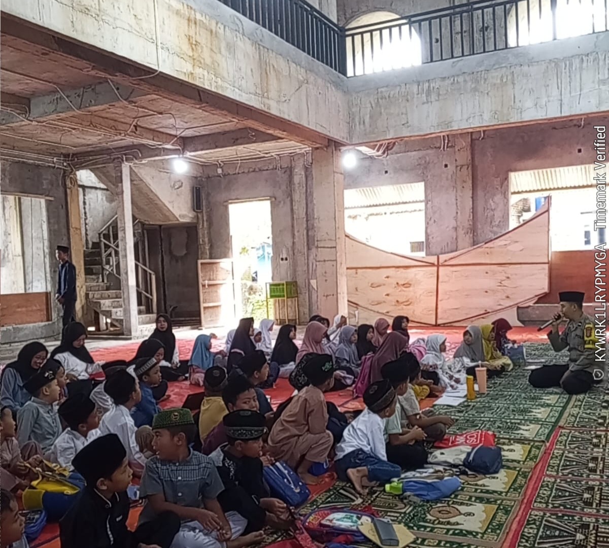Bhabinkamtibmas Kelurahan Tamanbaru, Aiptu Edianto, menghadiri kegiatan penutupan Pesantren Ramadhan Tahun 1447 H/2026 M dan santunan anak yatim di Masjid Nurul Amal, Link. Kubang Lesung Kulon, Kel. Tamanbaru, Kec. Citangkil, Kota Cilegon.