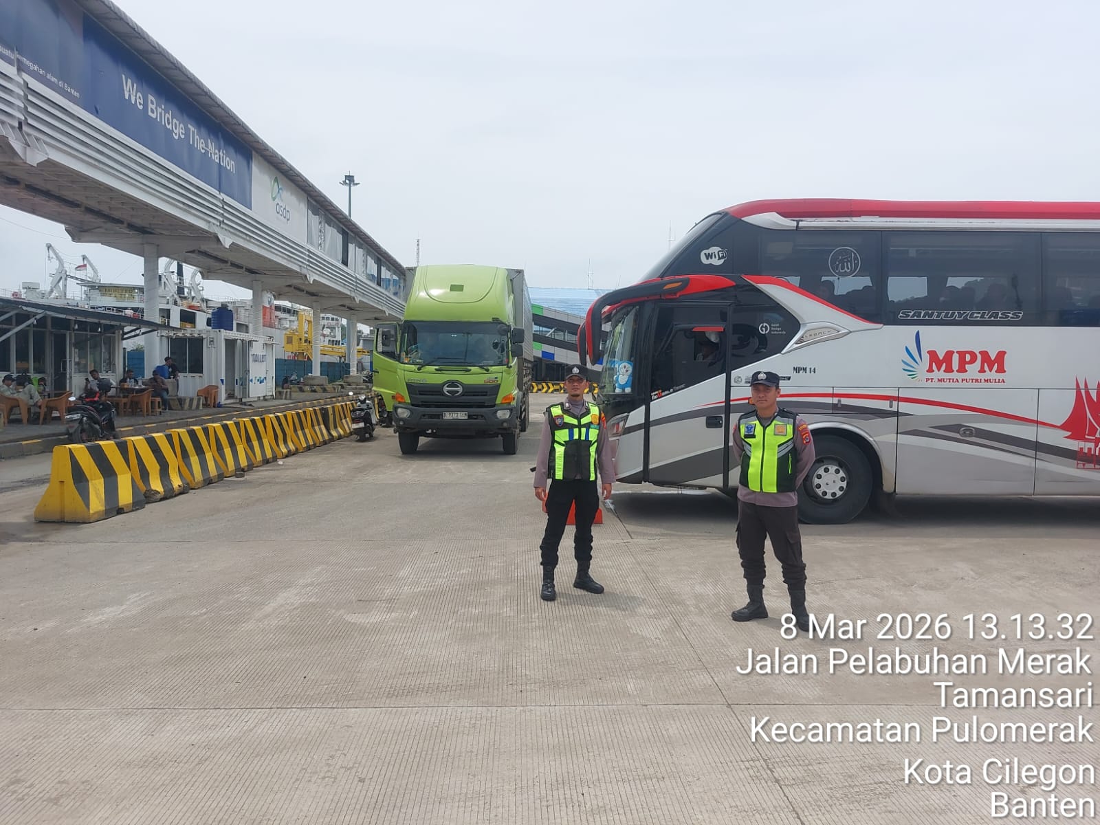 Personel Polsek Kskp Merak Pastikan Arus Kendaraan Penyeberangan Tetap Lancar