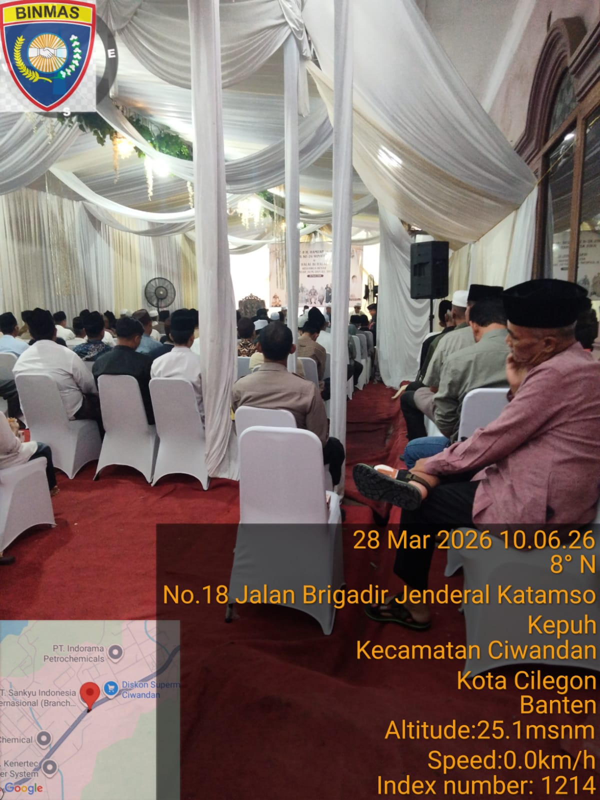Cilegon - Bhabinkamtibmas Kelurahan Gunung Sugih Polsek Ciwandan AIPTU Tri Widodo, menghadiri undangan Haul Ke-8 Bapak Hamzah Almarhum dan acara Halal-Bihalal yang berlangsung di kediaman Bapak Hamzah, Link.Gamburam RT.12 RW.03, Kel. Gunung Sugih, Kec. Ciwandan, Sabtu (28/03/2026).