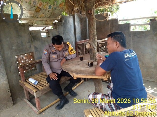 Cilegon - Bhabinkamtibmas Polsek Ciwandan Polres Cilegon Polda Banten Laksanakan Kopi Binmas,Ngopi Bareng Warga sekaligus Berikan Informasi Kamtibmas Dengan Cara Dialogis Bersama Warga Masyarakat, Senin (30/03/2026).