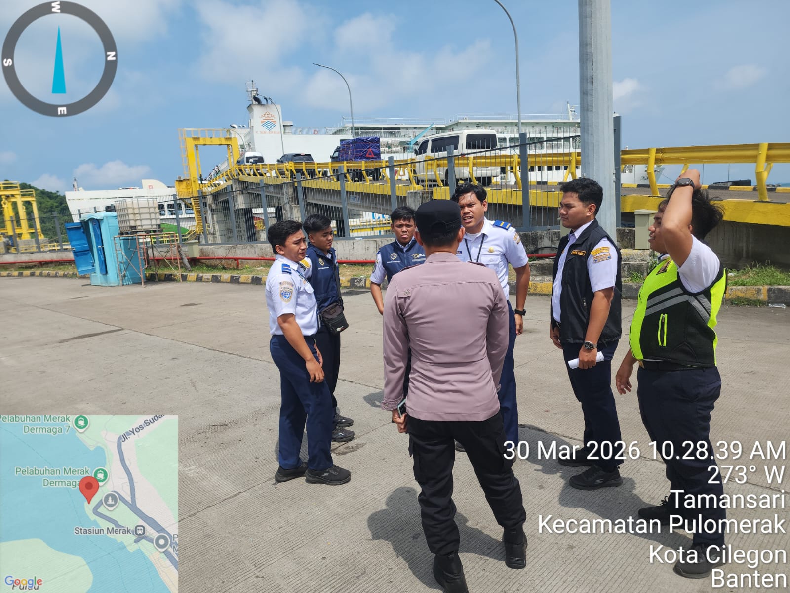 Cilegon - Personel Polsek Kskp Merak Polres Cilegon Polda Banten melaksanakan sambang dan patroli kawasan pelabuhan merak dalam rangka menjaga Harkamtibmas di Kawasan Pelabuhan Merak, Senin (30/03/2026).