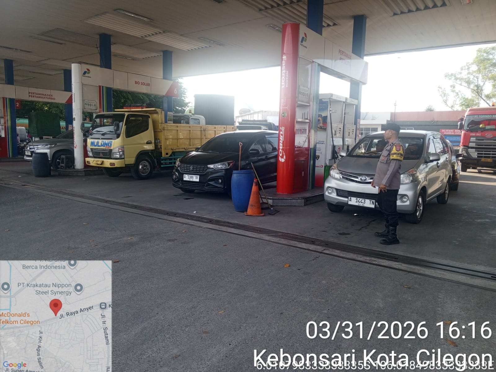 Cilegon - Kepolisian Polsek Ciwandan Polres Cilegon Polda Banten, melakukan pengecekan stok Bahan Bakar Minyak (BBM) di dua SPBU di wilayah Ciwandan, Cilegon, Selasa (31/03/2026).