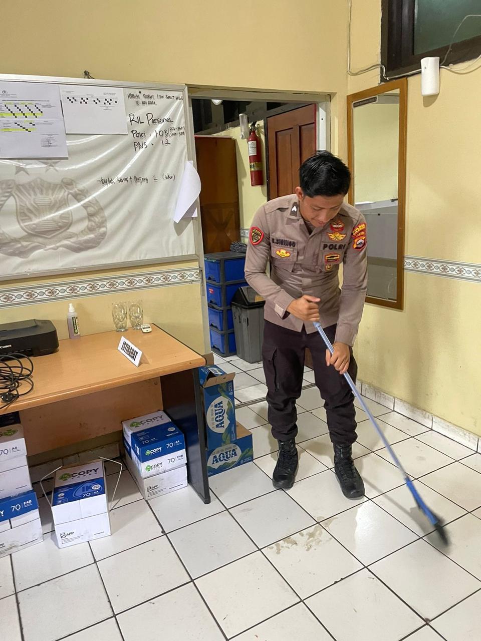 bertujuan untuk menjaga kebersihan ruangan Bag SDM Polres Cilegon.