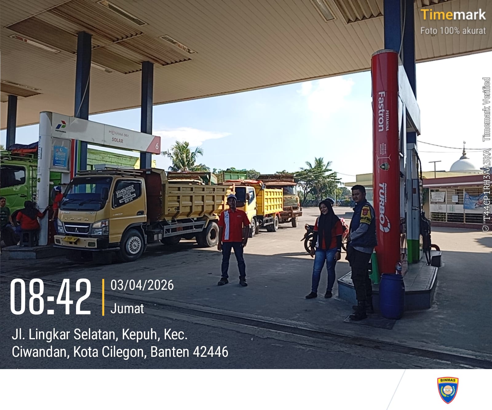 Cilegon - Kepolisian Polsek Ciwandan Polres Cilegon Polda Banten, melakukan pengecekan stok Bahan Bakar Minyak (BBM) di dua SPBU di wilayah Ciwandan, Cilegon, Jum'at (03/04/2026).