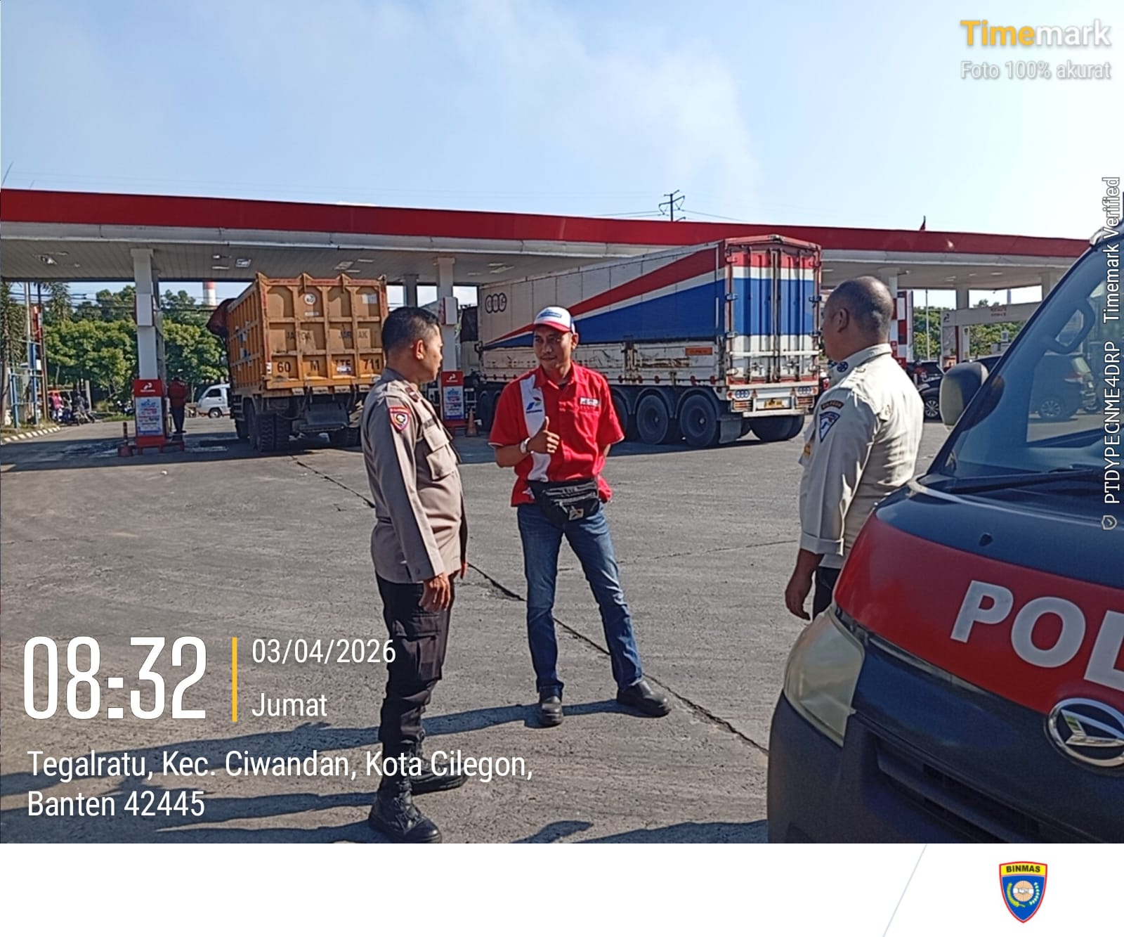 Cilegon - Kepolisian Polsek Ciwandan Polres Cilegon Polda Banten, melakukan pengecekan stok Bahan Bakar Minyak (BBM) di dua SPBU di wilayah Ciwandan, Cilegon, Jum'at (03/04/2026).