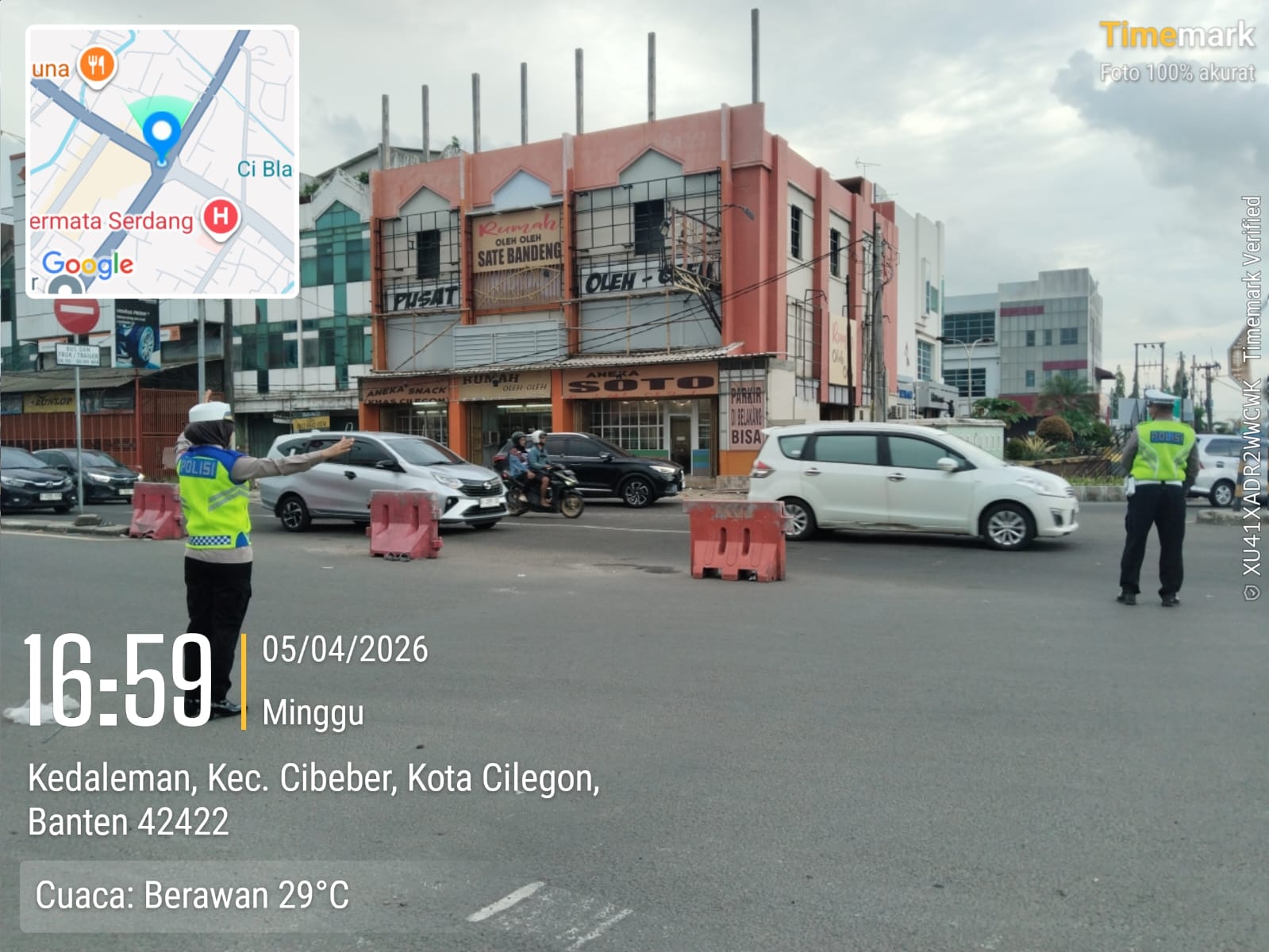 Cilegon – Polres Cilegon Polda Banten, Dalam Mewujudkan Aksi Nyata Pelayanan Kepada Masyarakat, Personil Satlantas Polres Cilegon Polda Banten Laksanakan PECAK (Pergelaran Cepat Anggota Kepolisian) Pengaturan Lalu lintas di wilayah perkotaaan terutama di titik rawan kemacetan dan kecelakaan lalu lintas, Minggu (05/04/2026).