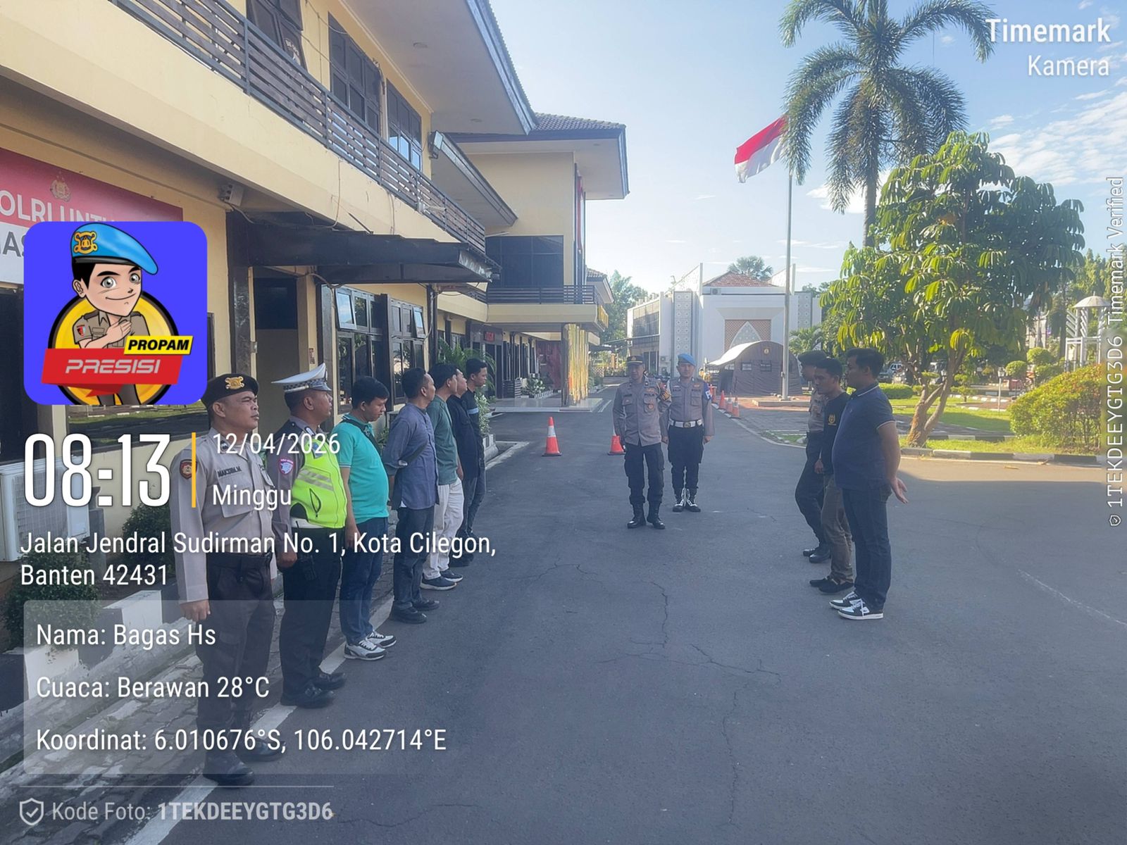 Cilegon, personel Satreskrim Polres Cilegon Polda Banten melaksanakan piket di penjagaan pintu masuk Polres Cilegon Polda Banten untuk memastikan mako Polres Cilegon dalam keadaan aman dan nyaman dalam melayani Masyarakat. minggu (13/04/2026).