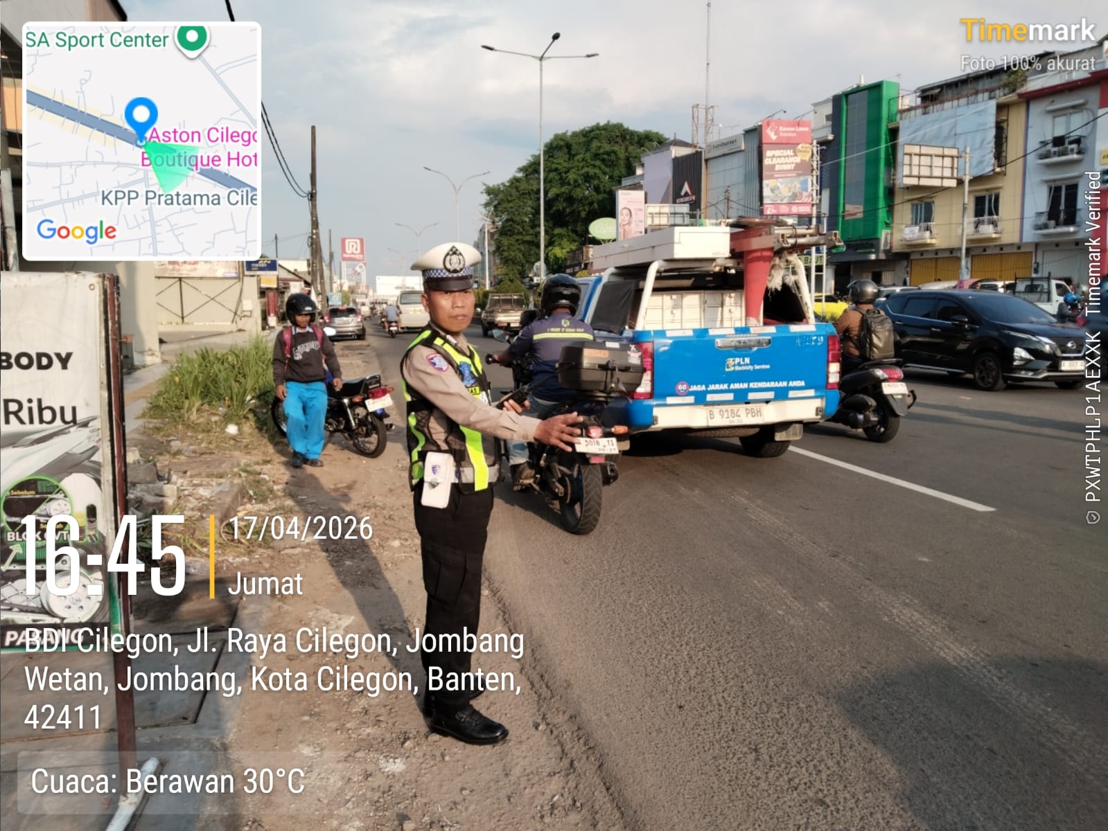 Cilegon, Satlantas Polres Cilegon Polda Banten – Berikan pelayanan kepada masyarakat Kasat lantas Polres Cilegon AKP Ridwan memerintahkan jajaran lalulintas untuk melaksanakan pengaturan lalu lintas di penggal – penggal jalan yang rawan kemacetan di Kota Cilegon, (Sabtu,18/4/2026)