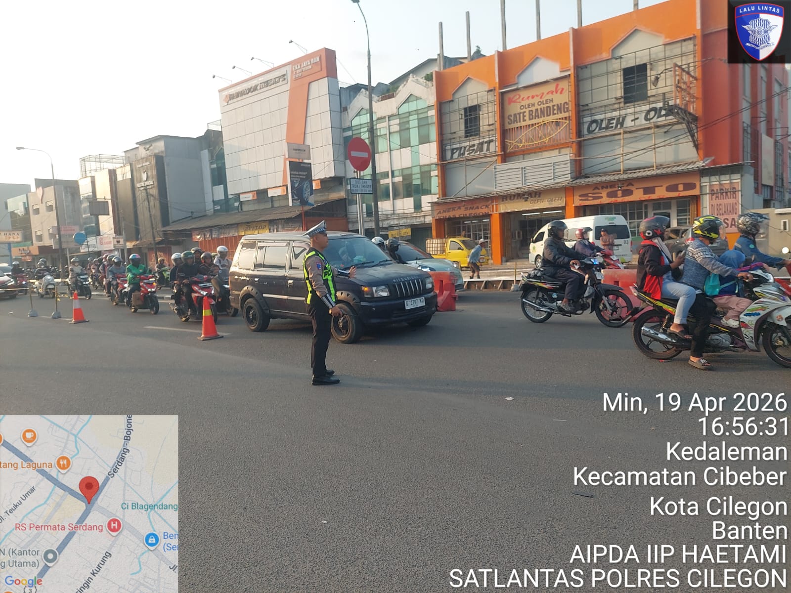 Cilegon, Satlantas Polres Cilegon Polda Banten – Berikan pelayanan kepada masyarakat Kasat lantas Polres Cilegon AKP Ridwan memerintahkan jajaran lalulintas untuk melaksanakan pengaturan lalu lintas di penggal – penggal jalan yang rawan kemacetan di Kota Cilegon, (Minggu,19/4/2026)