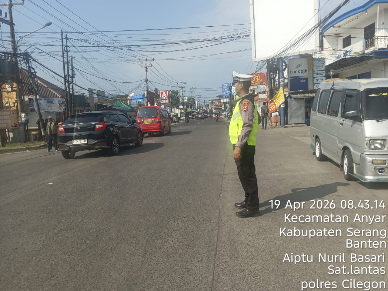 Cilegon, Satlantas Polres Cilegon Polda Banten – Berikan pelayanan kepada masyarakat Kasat lantas Polres Cilegon AKP Ridwan memerintahkan jajaran lalulintas untuk melaksanakan pengaturan lalu lintas di penggal – penggal jalan yang rawan kemacetan di Kota Cilegon, (Minggu,19/4/2026)