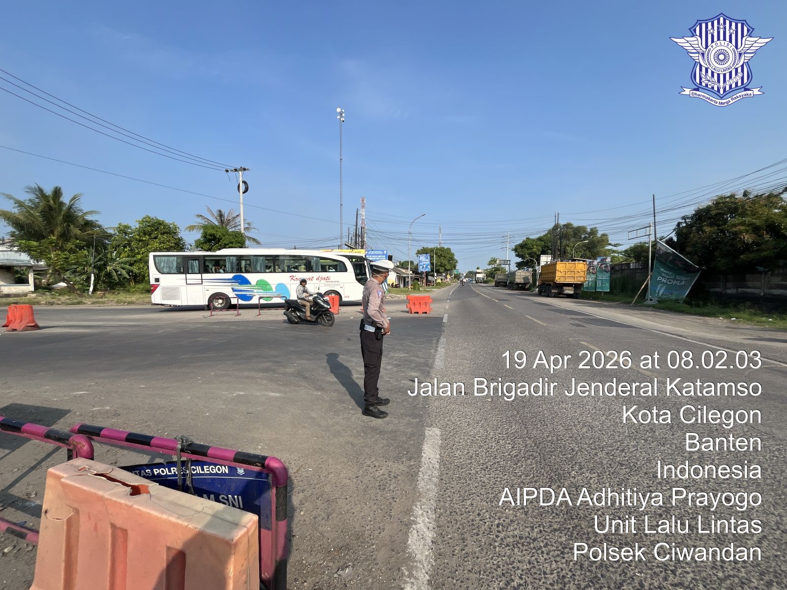 Cilegon, Satlantas Polres Cilegon Polda Banten – Berikan pelayanan kepada masyarakat Kasat lantas Polres Cilegon AKP Ridwan memerintahkan jajaran lalulintas untuk melaksanakan pengaturan lalu lintas di penggal – penggal jalan yang rawan kemacetan di Kota Cilegon, (Minggu,19/4/2026)