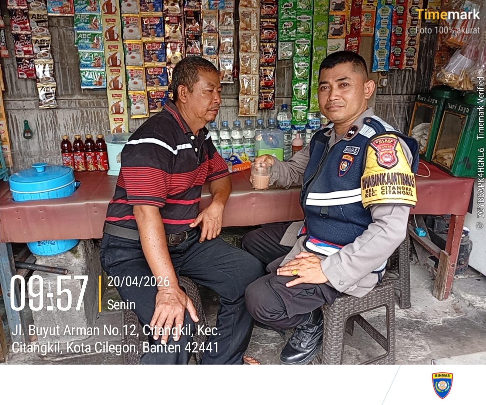 Cilegon - Bhabinkamtibmas Polsek Ciwandan Polres Cilegon Polda Banten melaksanakan kegiatan Patroli Dan sambang Dialogis secara Door to Door Sistem (DDS) serta Berikan Pesan-pesan Kamtibmas Guna Menciptakan situasi Harkamtibmas yang Aman dan nyaman, Senin (20/04/2026).