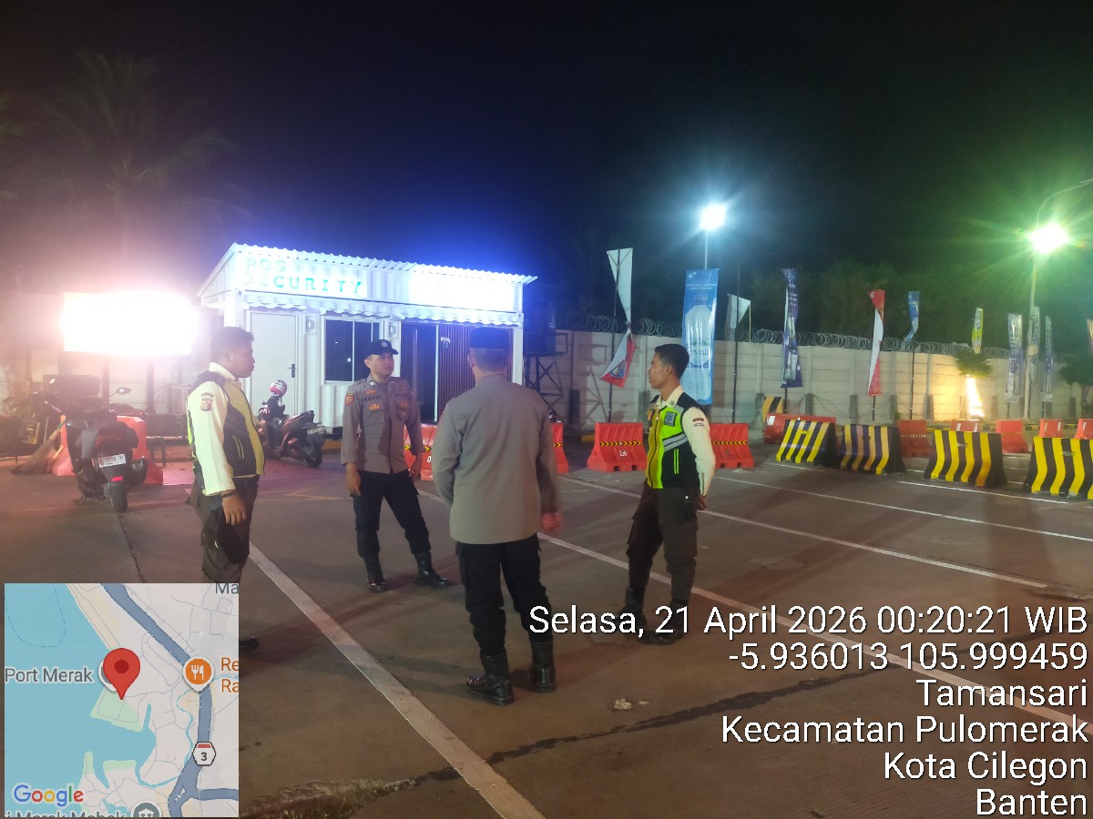 Cilegon - Personil Polsek Kskp Merak Polres Cilegon melaksanakan patroli di kawasan pelabuhan merak memberikan rasa aman dan damai, Selasa (21/04/2026)