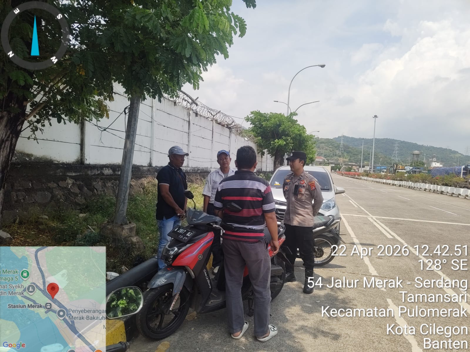 Cilegon - Personel Polsek Kskp Merak Polres Cilegon Polda Banten melaksanakan sambang dan patroli kawasan pelabuhan merak dalam rangka menjaga Harkamtibmas di Kawasan Pelabuhan Merak, Rabu (22/04/2026).