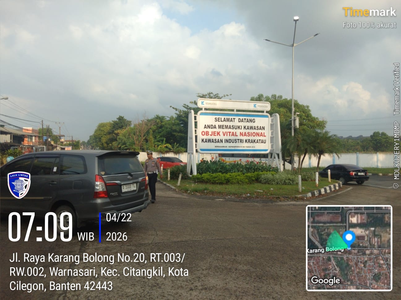 Cilegon - Pelayanan Prima Kepolisian Kepada Warga Masyarakat dan Guna menciptakan situasi lalu lintas yang aman, tertib dan lancar, Personel Unit Lantas Polsek Ciwandan Polres Cilegon Polda Banten secara rutin melaksanakan pengaturan lalu lintas, Rabu (22/04/2026).