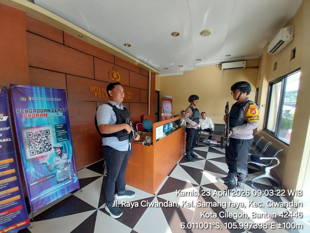 Cilegon - Dalam Kesiap Siagaan dan Memperketat Penjagaan Mako (Markas Komando), Personil Polsek Ciwandan Polres Cilegon Polda Banten melaksanakan Sistem Pengamanan Markas Komando (Sispam Mako), Rabu (22/04/2026).