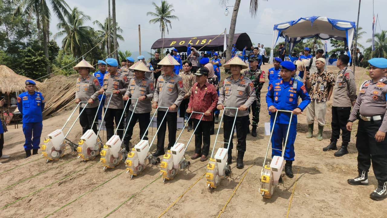 Kapolda Banten IRJEN. POL. HENGKI, S.IK., M.H. menyampaikan Penanaman jagung ini merupakan bagian dari upaya Polda Banten dalam mendukung ketahanan pangan nasional sekaligus mengoptimalkan pemanfaatan lahan produktif.