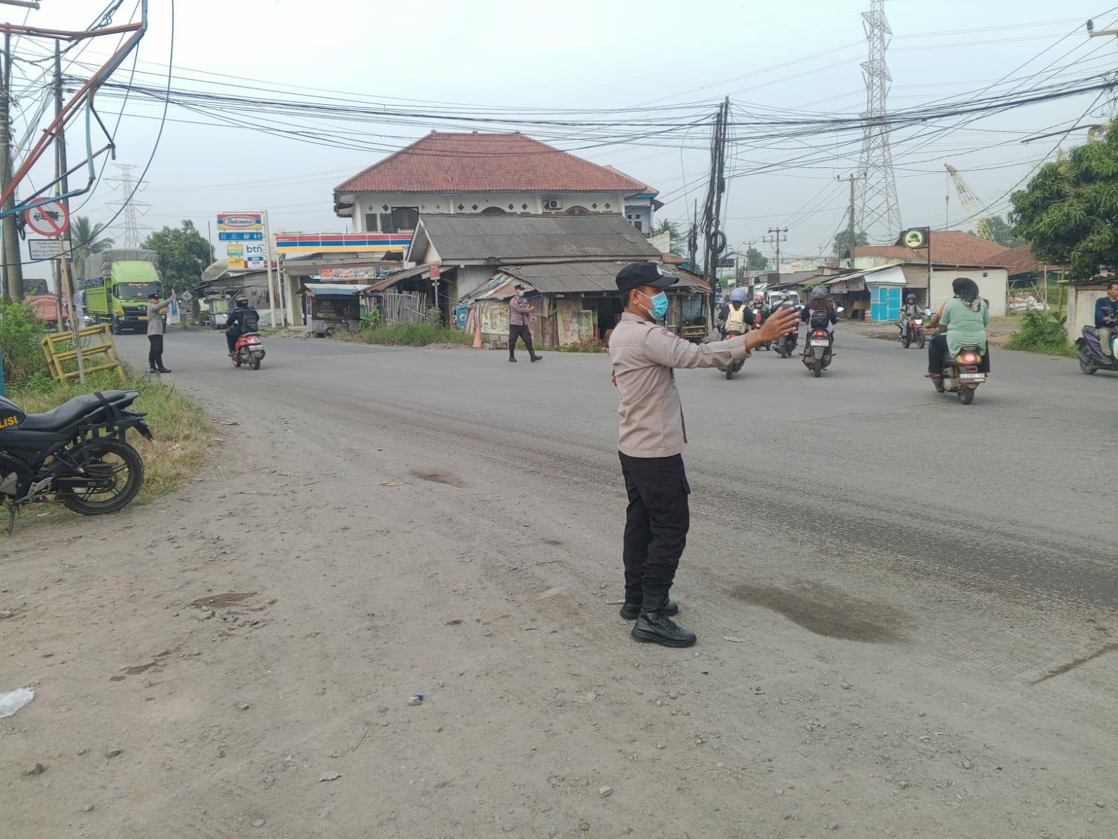 Cilegon - Dalam Mewujudkan Aksi Nyata Pelayanan Kepada Masyarakat, Bhabinkamtibmas Polsek Bojonegara Polres Cilegon Polda Banten Laksanakan Strong Poin Pengaturan Lalu-lintas, Kamis (23/04/2026).