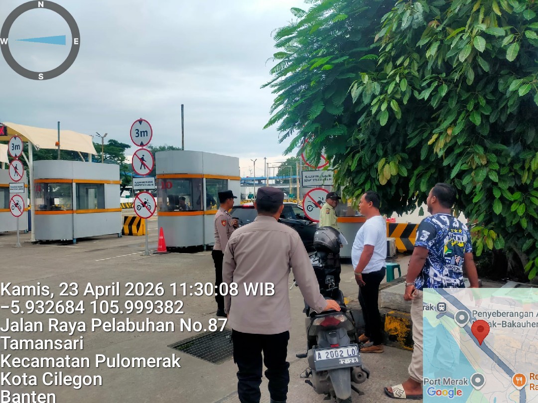 Cilegon - Personel Polsek Kskp Merak Polres Cilegon Polda Banten melaksanakan sambang dan patroli kawasan pelabuhan merak dalam rangka menjaga Harkamtibmas di Kawasan Pelabuhan Merak, Kamis (23/04/2026).