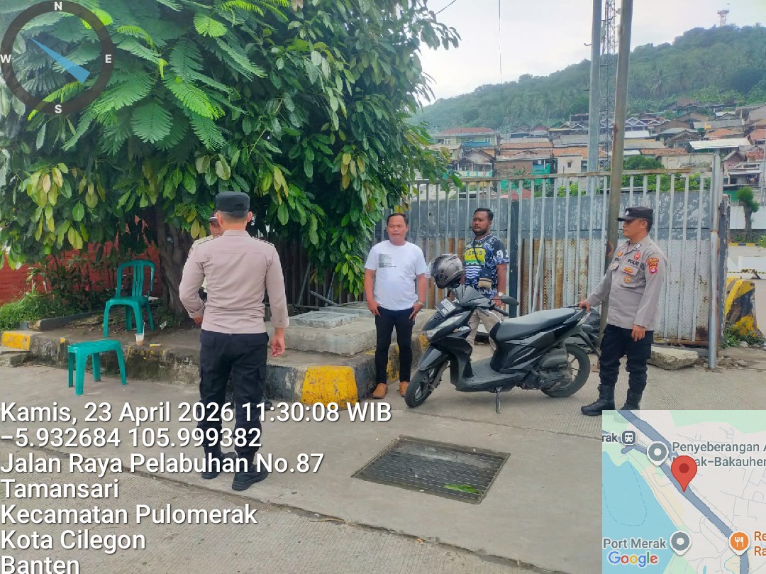 Cilegon - Personel Polsek Kskp Merak Polres Cilegon Polda Banten melaksanakan sambang dan patroli kawasan pelabuhan merak dalam rangka menjaga Harkamtibmas di Kawasan Pelabuhan Merak, Kamis (23/04/2026).