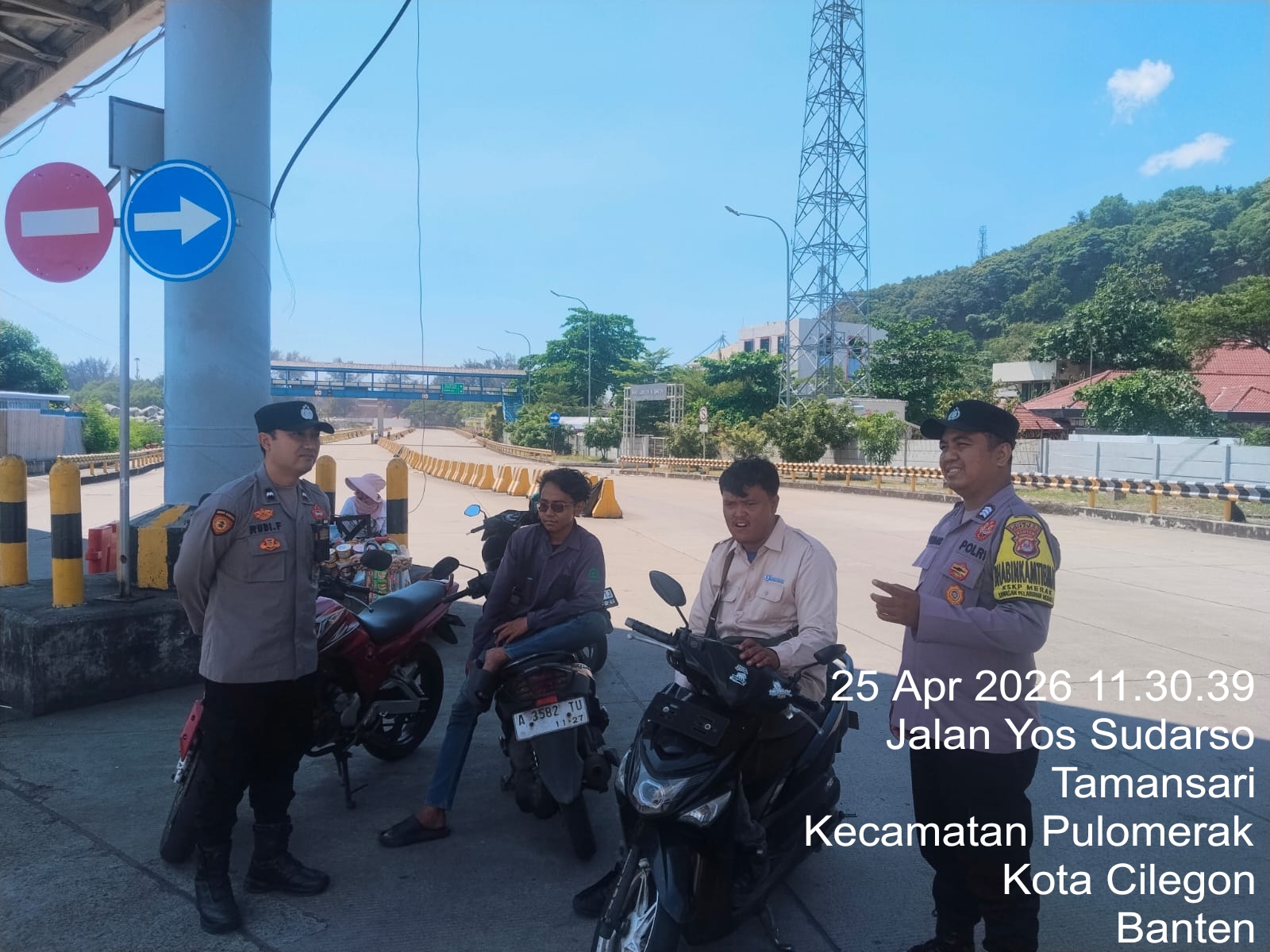 Personil Polsek KP Merak Polres Cilegon Laksanakan Patroli Dialogis di Kawasan Pelabuhan.