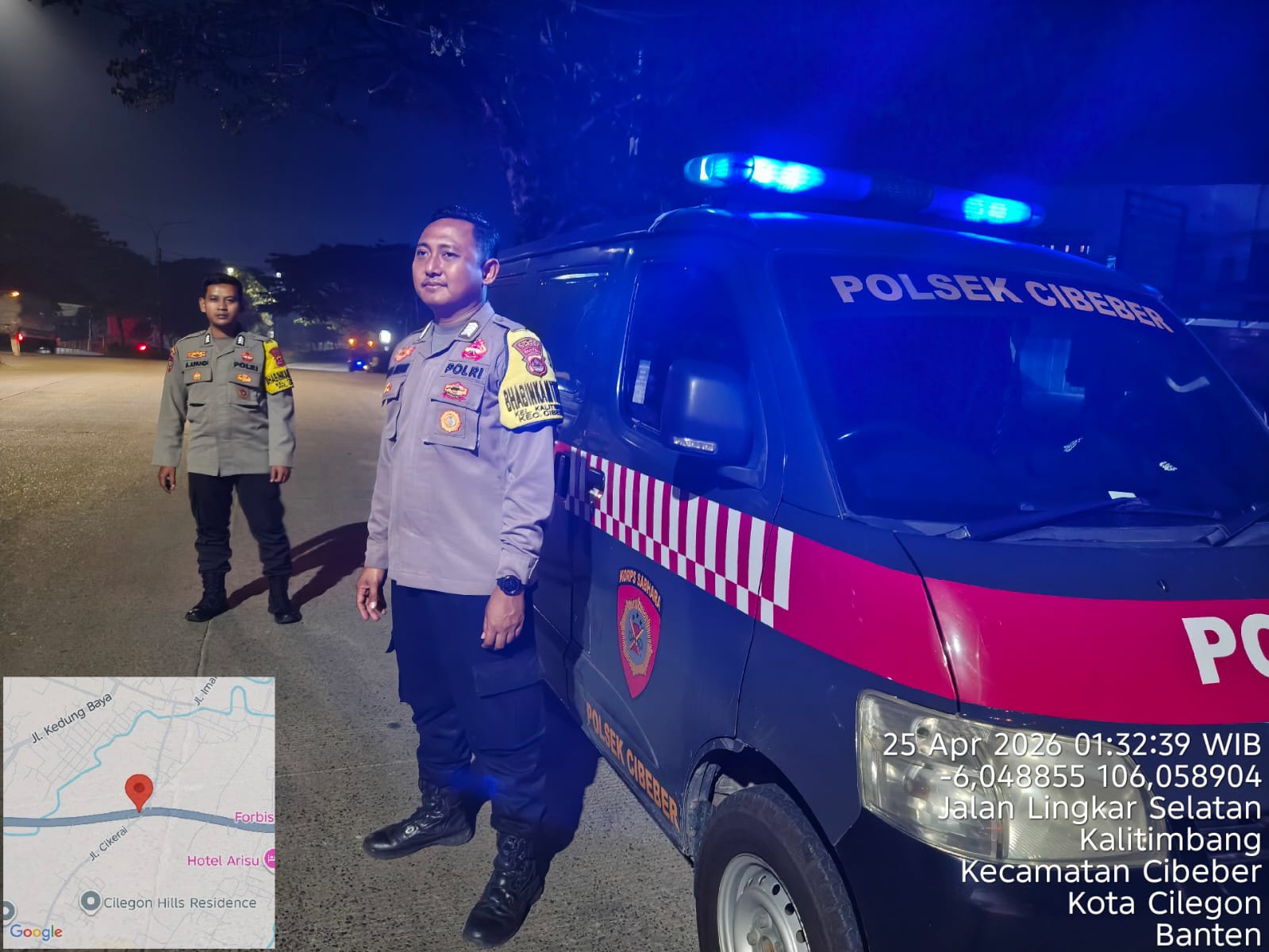 Cilegon – Polres Cilegon Polda Banten, Dalam Rangka Pencegahan Street Crime dan Memelihara situasi keamanan dan ketertiban serta memberikan rasa aman dan nyaman di masyarakat, Polsek Cibeber tingkatkan blue light patrol. Sabtu (25/04/2026).