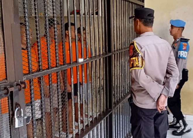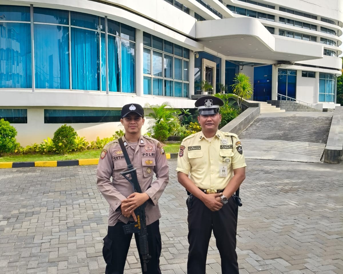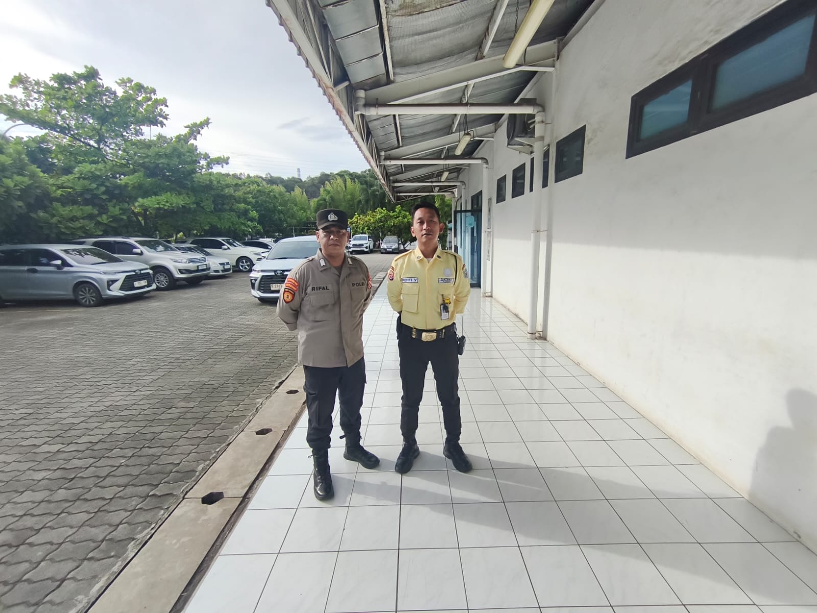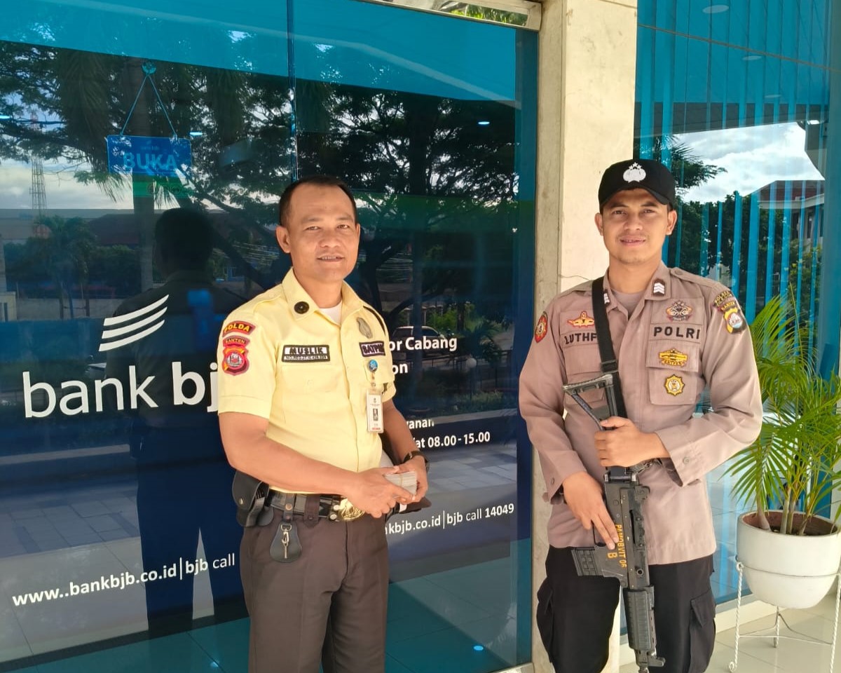 Polres Cilegon Trending, Personil Polsek Cilegon sambangi Security berikan himbauan kamtibmas.