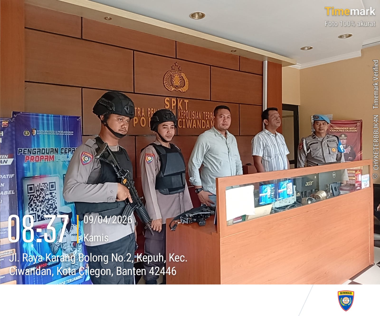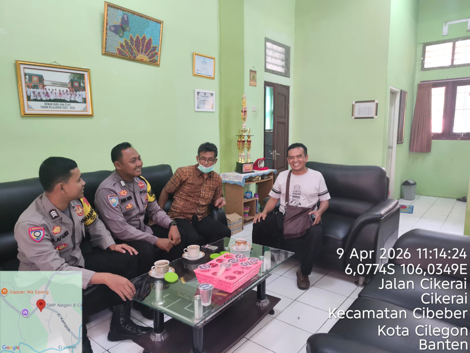 Cilegon – Polres Cilegon Polda Banten, Personil Polsek Cilegon Polres Cilegon Polda Banten laksanakan bincang dialogis sekaligus sampaikan himbauan kamtibmas kepada pihak keamanan/security Komp Taman Cilegon Indah Kel. Sukmajaya Kec.Jombang Kota Cilegon. Kamis (09/04/2026). Kapolres Cilegon Polda Banten AKBP Martua Raja Taripar Laut Silitonga melalui Kapolsek Cilegon Polres Cilegon KOMPOL Firman Hamid menerangkan dalam kegiatan tersebut...