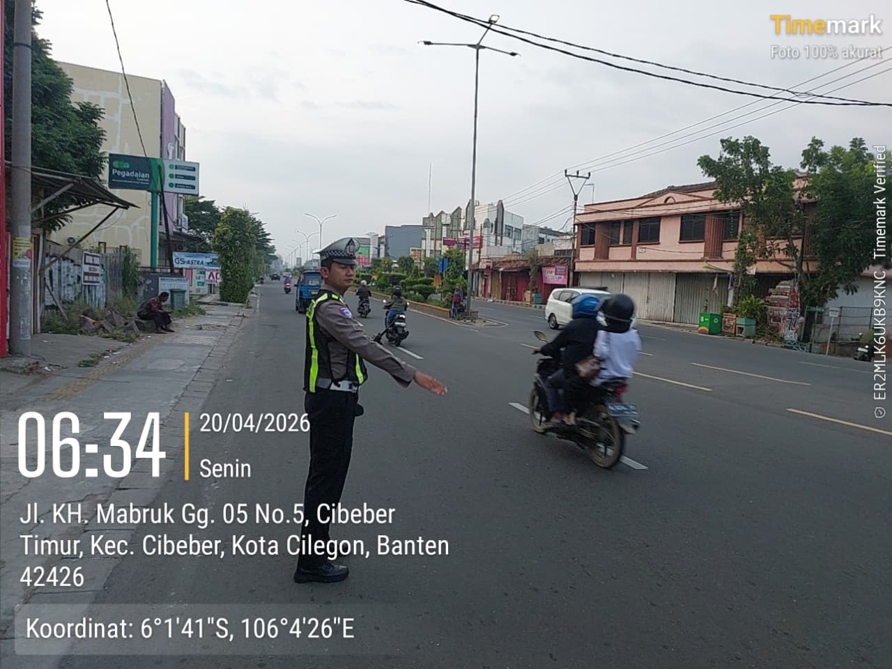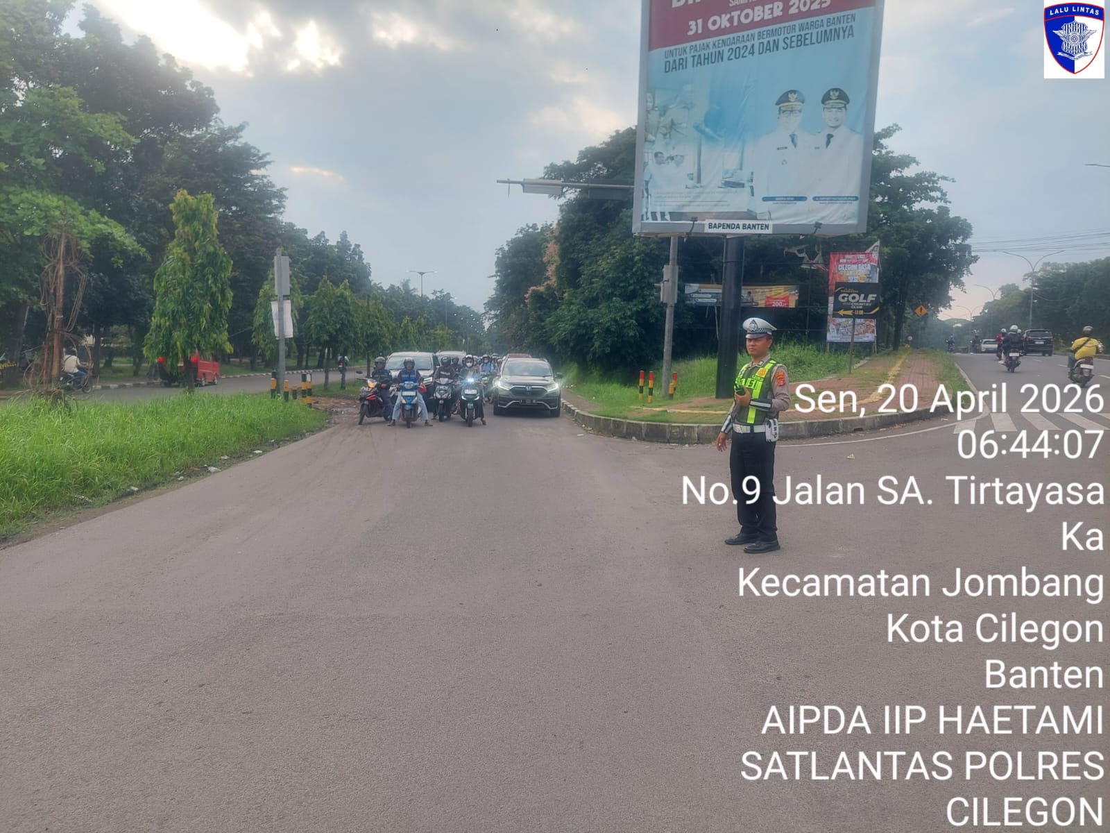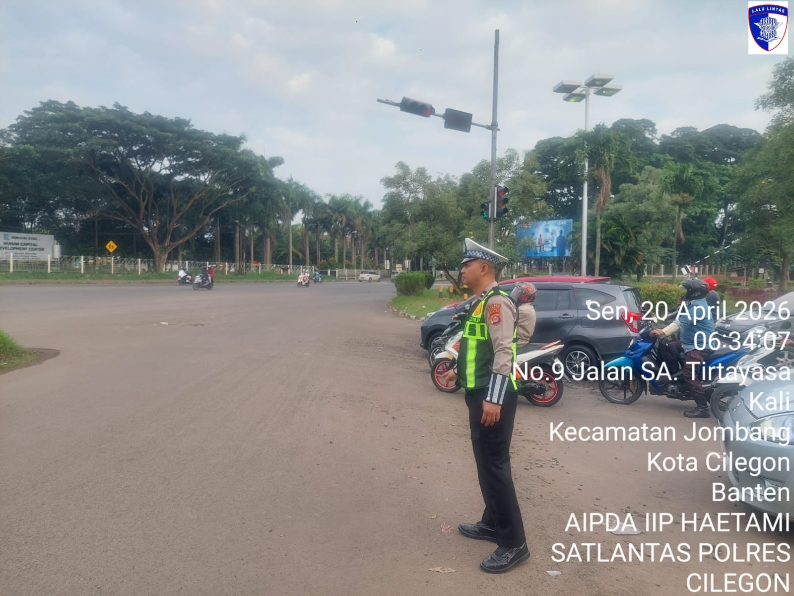 Cilegon, Satlantas Polres Cilegon Polda Banten – Berikan pelayanan kepada masyarakat Kasat lantas Polres Cilegon AKP Ridwan memerintahkan jajaran lalulintas untuk melaksanakan pengaturan lalu lintas di penggal – penggal jalan yang rawan kemacetan di Kota Cilegon, (Senin,20/4/2026)Dalam giat Pengaturan Lalu lintas di Pagi hari ini bertujuan agar terciptanya Kamseltibcar Lantas dan mengantisipasi terjadinya Laka...